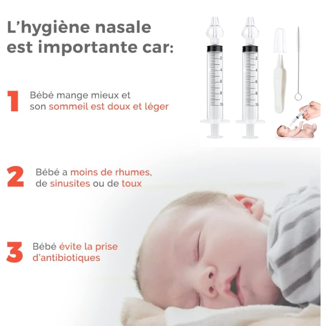 Offrez à votre bébé une respiration plus libre et un confort immédiat grùce à notre kit complet de nettoyage nasal, spécialement conçu pour les tout-petits.